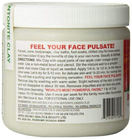 Aztec clay is a natural product that is created from calcium bentonite clay. There are no additives on this clay mask which may cause corrosion on your face or nay other health issues. When you use the Aztec clay facial mask, you are guaranteed of no side effects.