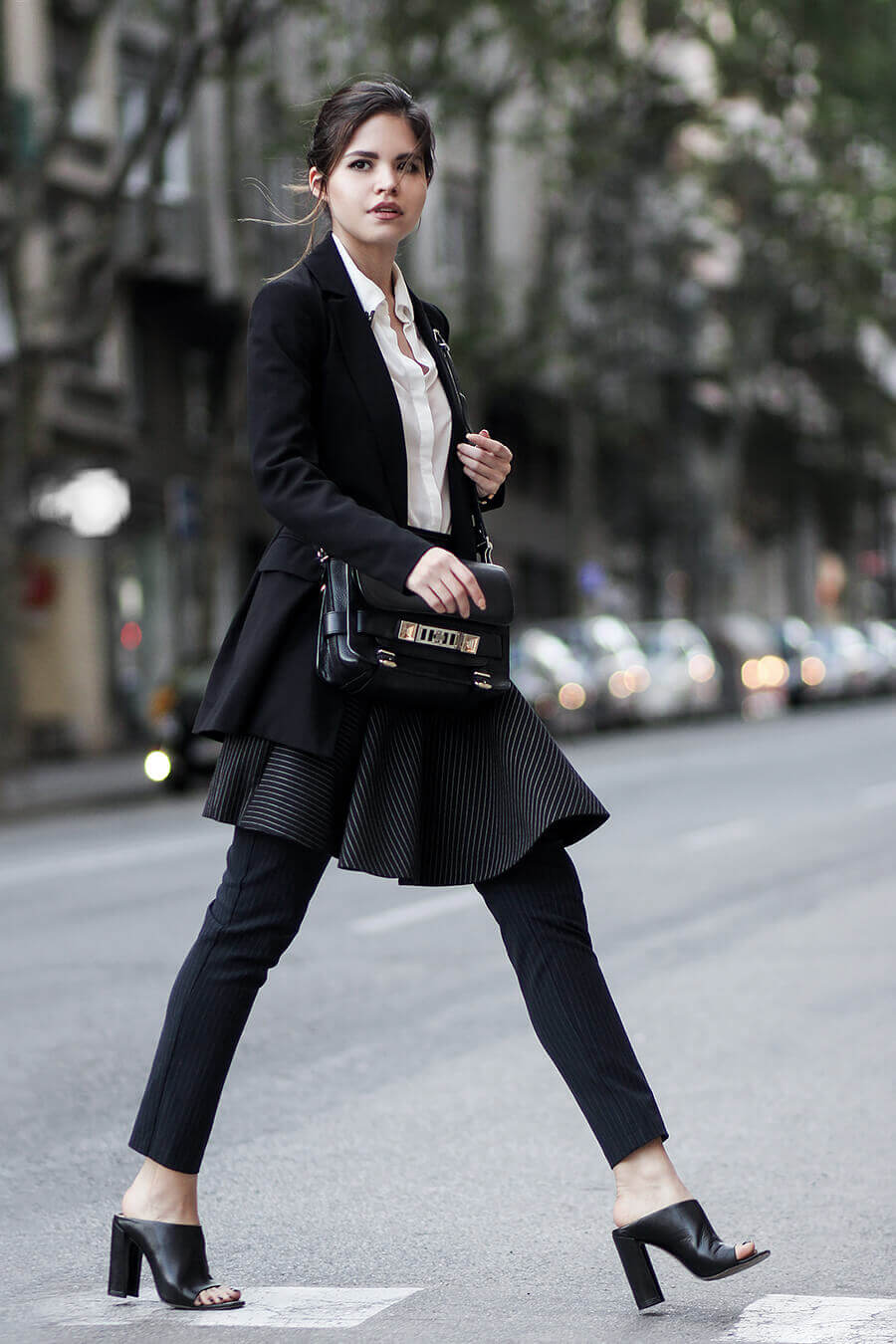 Skirt over pants outfit is a bit trickier to pull off. There's more mixing and matching, but it's so much fun! You can get a super elegant smart look with and edge or absolutely trendy casual. It's all in your hands.